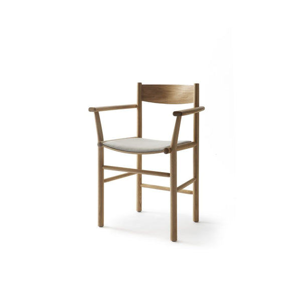 Designed by Wesley Walters and Salla Luhtasela, also known as duo Kaksikko, the Akademia Armrest chair combines a classic, straight frame with a softly curved seat, backrest and armrests. The available options are ash, oak natural, or light oak, with or without seat upholstery. The chair was originally the result of Master’s Thesis work at Aalto University by a member of the Kaksikko team; Wesley Walters. It is a fascinating combination of different cultures – simplistic Shaker style, Japanese design traditions, and Finnish craftsmanship heritage. "After three years of carefully refining the design, we are very pleased to see the Akademia armrest chair released to market. It was a challenge adding elements to such a simple typology, but we think the final result speaks the same language as the original Akademia while having its own unique presence in space. Most importantly, aside from its unique form, the ample, curved armrests make it a supremely comfortable chair to sit in.” Kaksikko (Wesley Walters & Salla Luhtasela). AKADEMIA ARMREST is made of sustainably grown ash or oak and molded plywood. It functions as a dining chair, meeting chair, or visitor’s chair in various surroundings, blending gracefully into different interior styles.