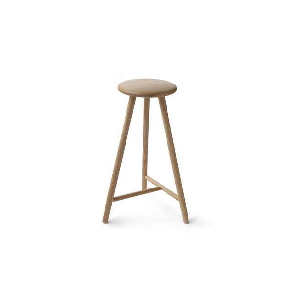 The Perch stool got its inspiration from a very round, solid wooden doorknob in Helsinki. The young designers participated in the Finnish Design Shop Design competition, FDS Awards, and won the first prize with their light stool. The counter height Perch fits well in the kitchen as well as waiting areas or bars. Available versions are oak, black stained oak, and grey painted birch.